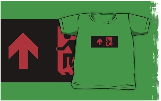 Accessible Exit Sign Project Wheelchair Wheelie Running Man Symbol Means of Egress Icon Disability Emergency Evacuation Fire Safety Kids T-shirts 100
