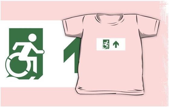 Accessible Exit Sign Project Wheelchair Wheelie Running Man Symbol Means of Egress Icon Disability Emergency Evacuation Fire Safety Kids T-shirts 109