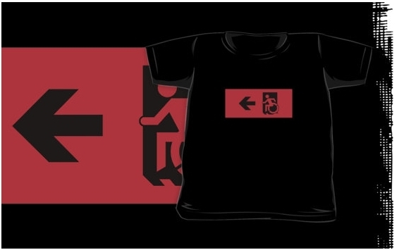Accessible Exit Sign Project Wheelchair Wheelie Running Man Symbol Means of Egress Icon Disability Emergency Evacuation Fire Safety Kids T-shirts 11