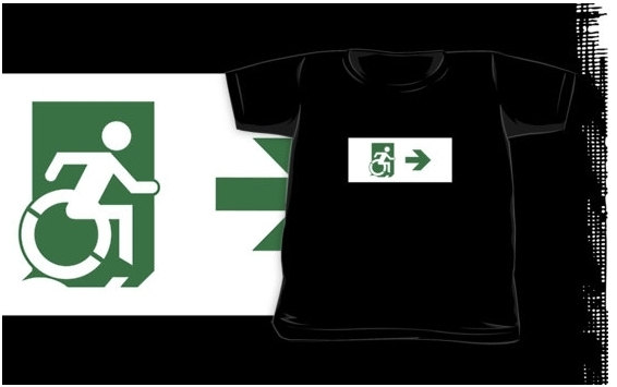 Accessible Exit Sign Project Wheelchair Wheelie Running Man Symbol Means of Egress Icon Disability Emergency Evacuation Fire Safety Kids T-shirts 110