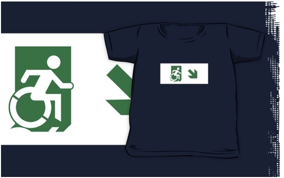Accessible Exit Sign Project Wheelchair Wheelie Running Man Symbol Means of Egress Icon Disability Emergency Evacuation Fire Safety Kids T-shirts 112