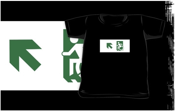 Accessible Exit Sign Project Wheelchair Wheelie Running Man Symbol Means of Egress Icon Disability Emergency Evacuation Fire Safety Kids T-shirts 117