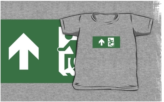 Accessible Exit Sign Project Wheelchair Wheelie Running Man Symbol Means of Egress Icon Disability Emergency Evacuation Fire Safety Kids T-shirts 119