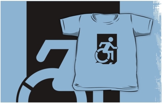 Accessible Exit Sign Project Wheelchair Wheelie Running Man Symbol Means of Egress Icon Disability Emergency Evacuation Fire Safety Kids T-shirts 125