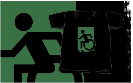 Accessible Exit Sign Project Wheelchair Wheelie Running Man Symbol Means of Egress Icon Disability Emergency Evacuation Fire Safety Kids T-shirts 127