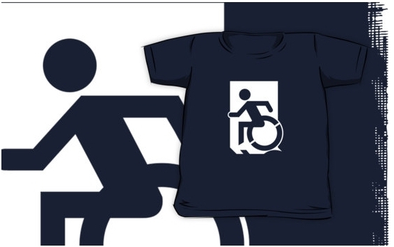 Accessible Exit Sign Project Wheelchair Wheelie Running Man Symbol Means of Egress Icon Disability Emergency Evacuation Fire Safety Kids T-shirts 135