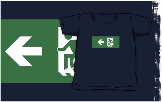 Accessible Exit Sign Project Wheelchair Wheelie Running Man Symbol Means of Egress Icon Disability Emergency Evacuation Fire Safety Kids T-shirts 140