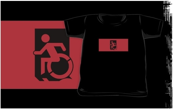 Accessible Exit Sign Project Wheelchair Wheelie Running Man Symbol Means of Egress Icon Disability Emergency Evacuation Fire Safety Kids T-shirts 15