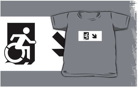 Accessible Exit Sign Project Wheelchair Wheelie Running Man Symbol Means of Egress Icon Disability Emergency Evacuation Fire Safety Kids T-shirts 150