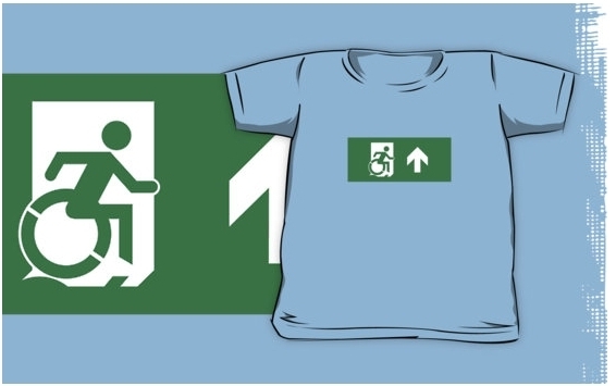 Accessible Exit Sign Project Wheelchair Wheelie Running Man Symbol Means of Egress Icon Disability Emergency Evacuation Fire Safety Kids T-shirts 2