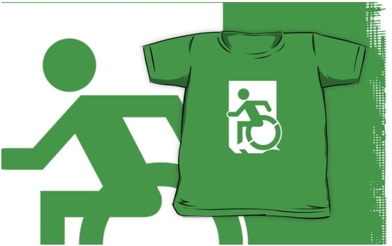 Accessible Exit Sign Project Wheelchair Wheelie Running Man Symbol Means of Egress Icon Disability Emergency Evacuation Fire Safety Kids T-shirts 3