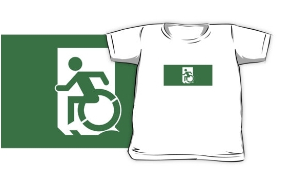 Accessible Exit Sign Project Wheelchair Wheelie Running Man Symbol Means of Egress Icon Disability Emergency Evacuation Fire Safety Kids T-shirts 30