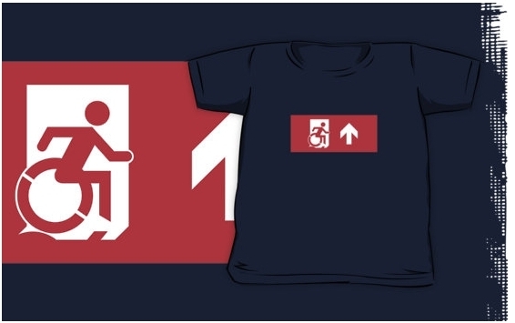 Accessible Exit Sign Project Wheelchair Wheelie Running Man Symbol Means of Egress Icon Disability Emergency Evacuation Fire Safety Kids T-shirts 33