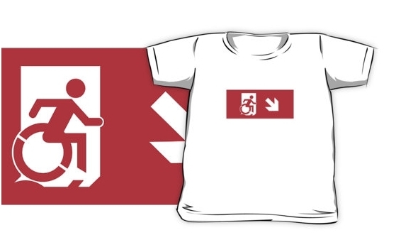 Accessible Exit Sign Project Wheelchair Wheelie Running Man Symbol Means of Egress Icon Disability Emergency Evacuation Fire Safety Kids T-shirts 39