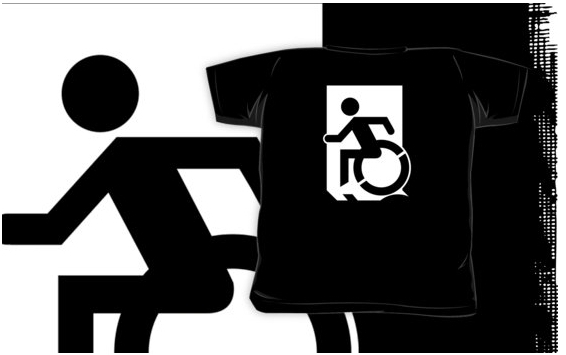 Accessible Exit Sign Project Wheelchair Wheelie Running Man Symbol Means of Egress Icon Disability Emergency Evacuation Fire Safety Kids T-shirts 40
