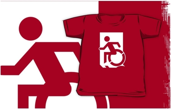 Accessible Exit Sign Project Wheelchair Wheelie Running Man Symbol Means of Egress Icon Disability Emergency Evacuation Fire Safety Kids T-shirts 44