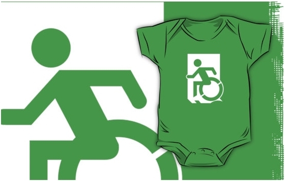 Accessible Exit Sign Project Wheelchair Wheelie Running Man Symbol Means of Egress Icon Disability Emergency Evacuation Fire Safety Kids T-shirts 48