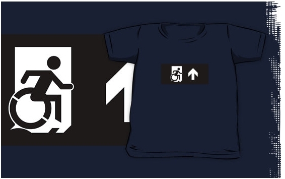 Accessible Exit Sign Project Wheelchair Wheelie Running Man Symbol Means of Egress Icon Disability Emergency Evacuation Fire Safety Kids T-shirts 59