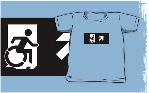 Accessible Exit Sign Project Wheelchair Wheelie Running Man Symbol Means of Egress Icon Disability Emergency Evacuation Fire Safety Kids T-shirts 63