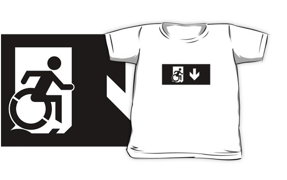 Accessible Exit Sign Project Wheelchair Wheelie Running Man Symbol Means of Egress Icon Disability Emergency Evacuation Fire Safety Kids T-shirts 65