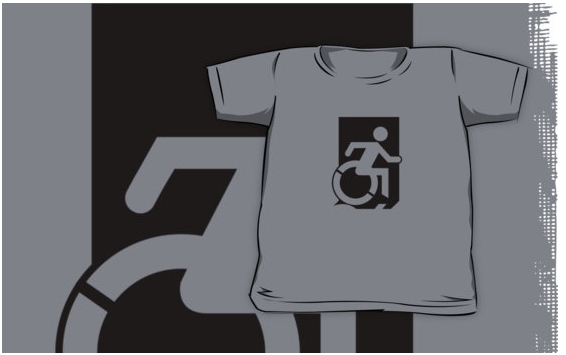 Accessible Exit Sign Project Wheelchair Wheelie Running Man Symbol Means of Egress Icon Disability Emergency Evacuation Fire Safety Kids T-shirts 79