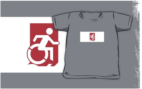 Accessible Exit Sign Project Wheelchair Wheelie Running Man Symbol Means of Egress Icon Disability Emergency Evacuation Fire Safety Kids T-shirts 84