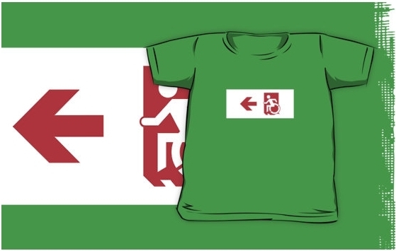 Accessible Exit Sign Project Wheelchair Wheelie Running Man Symbol Means of Egress Icon Disability Emergency Evacuation Fire Safety Kids T-shirts 86