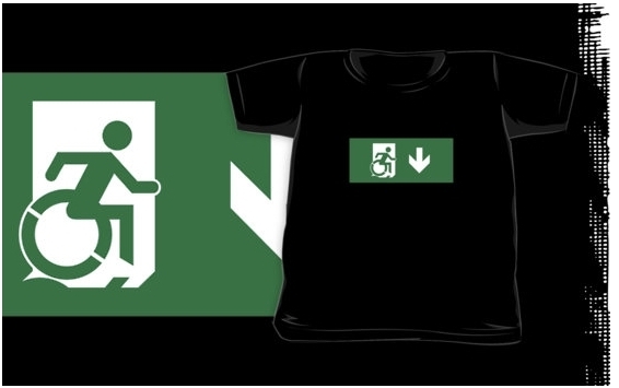 Accessible Exit Sign Project Wheelchair Wheelie Running Man Symbol Means of Egress Icon Disability Emergency Evacuation Fire Safety Kids T-shirts 93