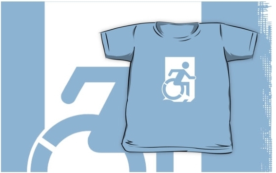 Accessible Exit Sign Project Wheelchair Wheelie Running Man Symbol Means of Egress Icon Disability Emergency Evacuation Fire Safety Kids T-shirts 94