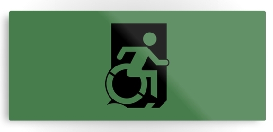 Accessible Exit Sign Project Wheelchair Wheelie Running Man Symbol Means of Egress Icon Disability Emergency Evacuation Fire Safety Metal Printed 1