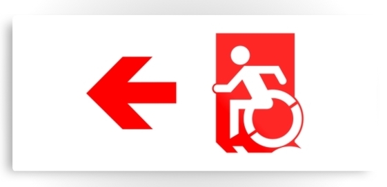Accessible Exit Sign Project Wheelchair Wheelie Running Man Symbol Means of Egress Icon Disability Emergency Evacuation Fire Safety Metal Printed 102