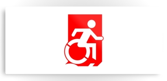 Accessible Exit Sign Project Wheelchair Wheelie Running Man Symbol Means of Egress Icon Disability Emergency Evacuation Fire Safety Metal Printed 104