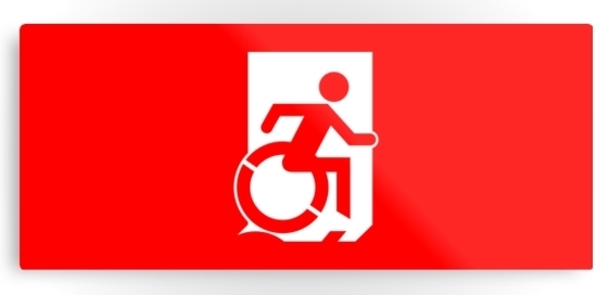 Accessible Exit Sign Project Wheelchair Wheelie Running Man Symbol Means of Egress Icon Disability Emergency Evacuation Fire Safety Metal Printed 124