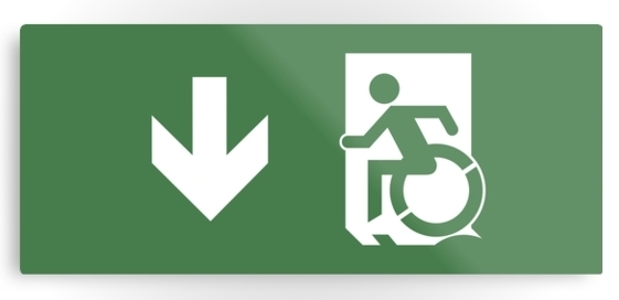 Accessible Exit Sign Project Wheelchair Wheelie Running Man Symbol Means of Egress Icon Disability Emergency Evacuation Fire Safety Metal Printed 14