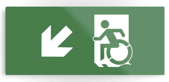 Accessible Exit Sign Project Wheelchair Wheelie Running Man Symbol Means of Egress Icon Disability Emergency Evacuation Fire Safety Metal Printed 15
