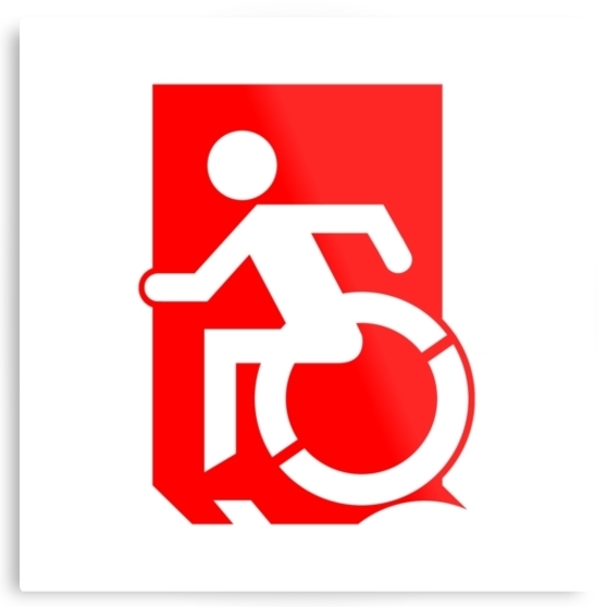 Accessible Exit Sign Project Wheelchair Wheelie Running Man Symbol Means of Egress Icon Disability Emergency Evacuation Fire Safety Metal Printed 39