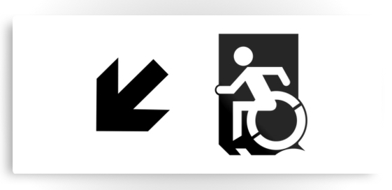 Accessible Exit Sign Project Wheelchair Wheelie Running Man Symbol Means of Egress Icon Disability Emergency Evacuation Fire Safety Metal Printed 47