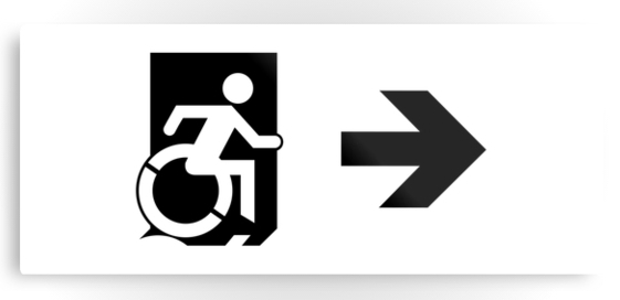 Accessible Exit Sign Project Wheelchair Wheelie Running Man Symbol Means of Egress Icon Disability Emergency Evacuation Fire Safety Metal Printed 56