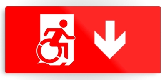 Accessible Exit Sign Project Wheelchair Wheelie Running Man Symbol Means of Egress Icon Disability Emergency Evacuation Fire Safety Metal Printed 7