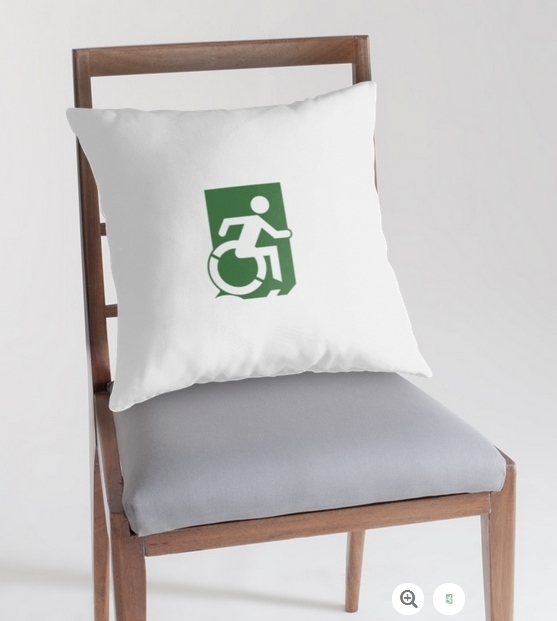 Accessible Exit Sign Project Wheelchair Wheelie Running Man Symbol Means of Egress Icon Disability Emergency Evacuation Fire Safety Throw Pillow Cushion 110
