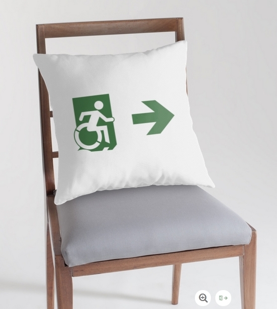 Accessible Exit Sign Project Wheelchair Wheelie Running Man Symbol Means of Egress Icon Disability Emergency Evacuation Fire Safety Throw Pillow Cushion 114