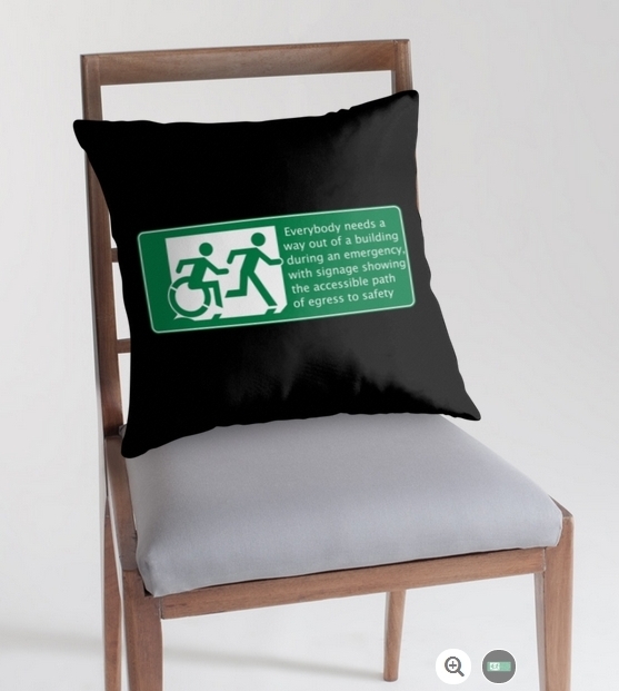 Accessible Exit Sign Project Wheelchair Wheelie Running Man Symbol Means of Egress Icon Disability Emergency Evacuation Fire Safety Throw Pillow Cushion 118