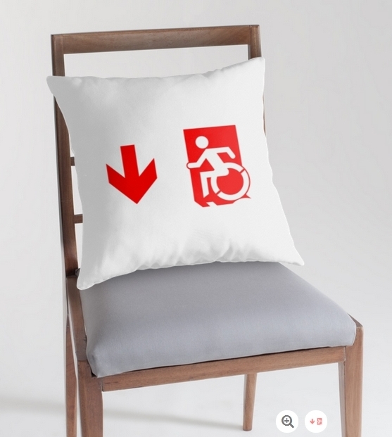 Accessible Exit Sign Project Wheelchair Wheelie Running Man Symbol Means of Egress Icon Disability Emergency Evacuation Fire Safety Throw Pillow Cushion 135