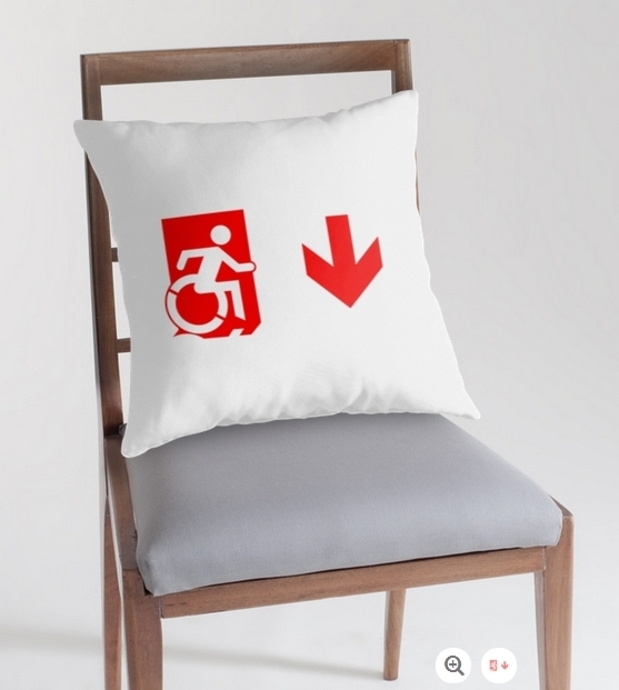 Accessible Exit Sign Project Wheelchair Wheelie Running Man Symbol Means of Egress Icon Disability Emergency Evacuation Fire Safety Throw Pillow Cushion 143