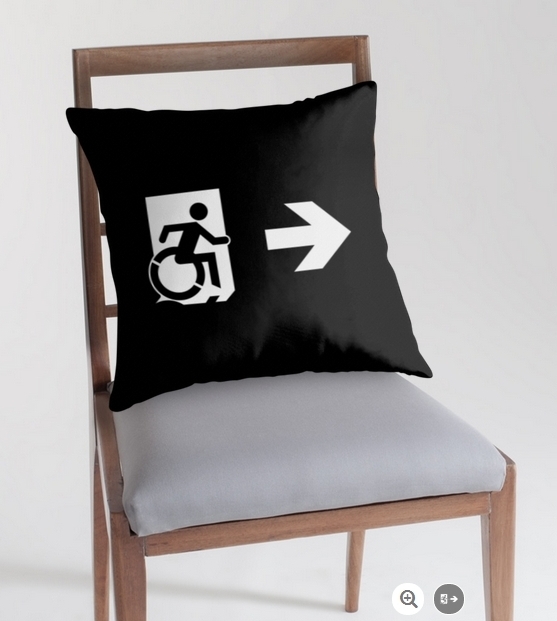 Accessible Exit Sign Project Wheelchair Wheelie Running Man Symbol Means of Egress Icon Disability Emergency Evacuation Fire Safety Throw Pillow Cushion 160