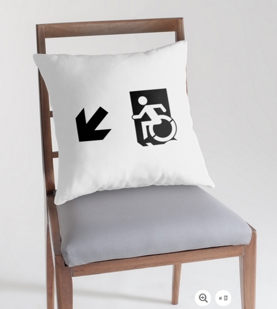 Accessible Exit Sign Project Wheelchair Wheelie Running Man Symbol Means of Egress Icon Disability Emergency Evacuation Fire Safety Throw Pillow Cushion 55
