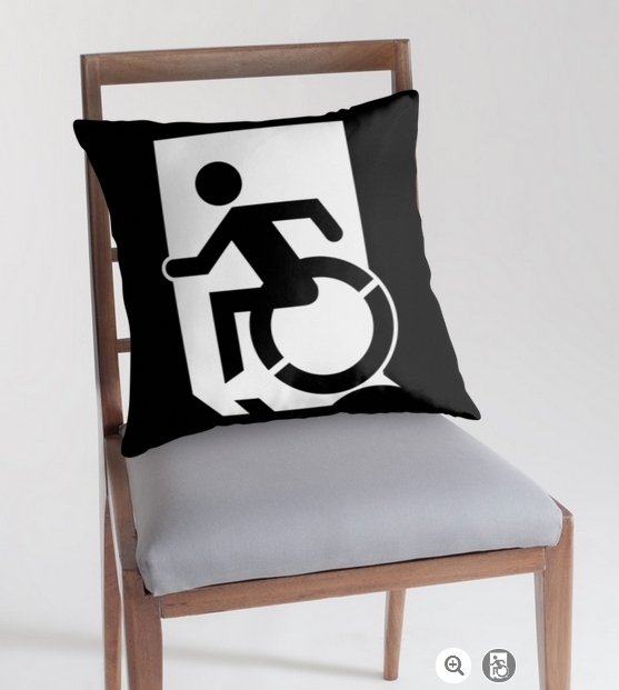 Accessible Exit Sign Project Wheelchair Wheelie Running Man Symbol Means of Egress Icon Disability Emergency Evacuation Fire Safety Throw Pillow Cushion 56