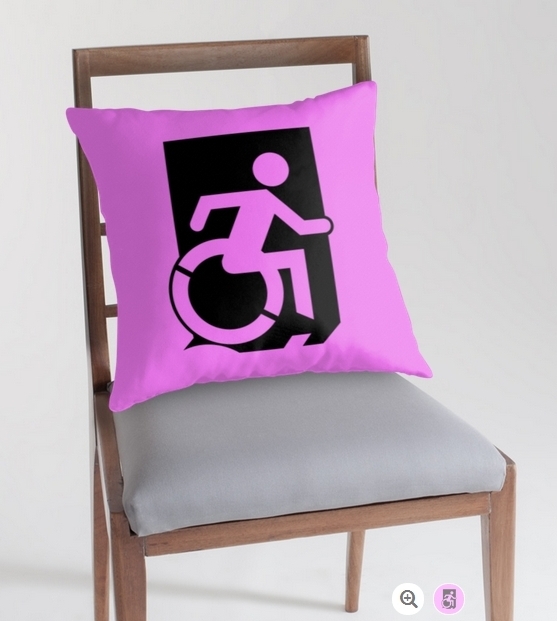 Accessible Exit Sign Project Wheelchair Wheelie Running Man Symbol Means of Egress Icon Disability Emergency Evacuation Fire Safety Throw Pillow Cushion 62