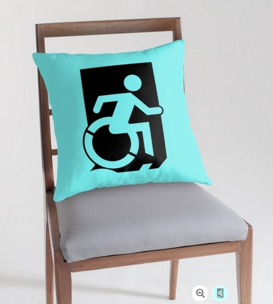 Accessible Exit Sign Project Wheelchair Wheelie Running Man Symbol Means of Egress Icon Disability Emergency Evacuation Fire Safety Throw Pillow Cushion 83