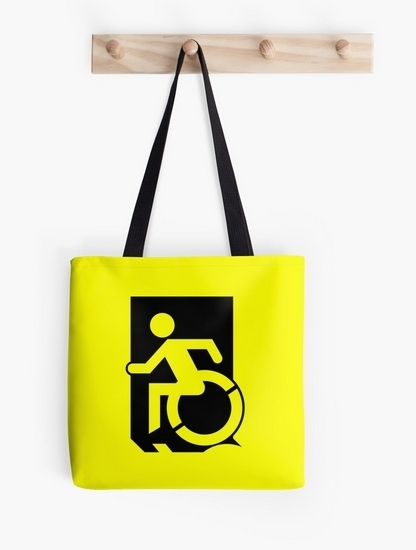 Accessible Exit Sign Project Wheelchair Wheelie Running Man Symbol Means of Egress Icon Disability Emergency Evacuation Fire Safety Tote Bag 1
